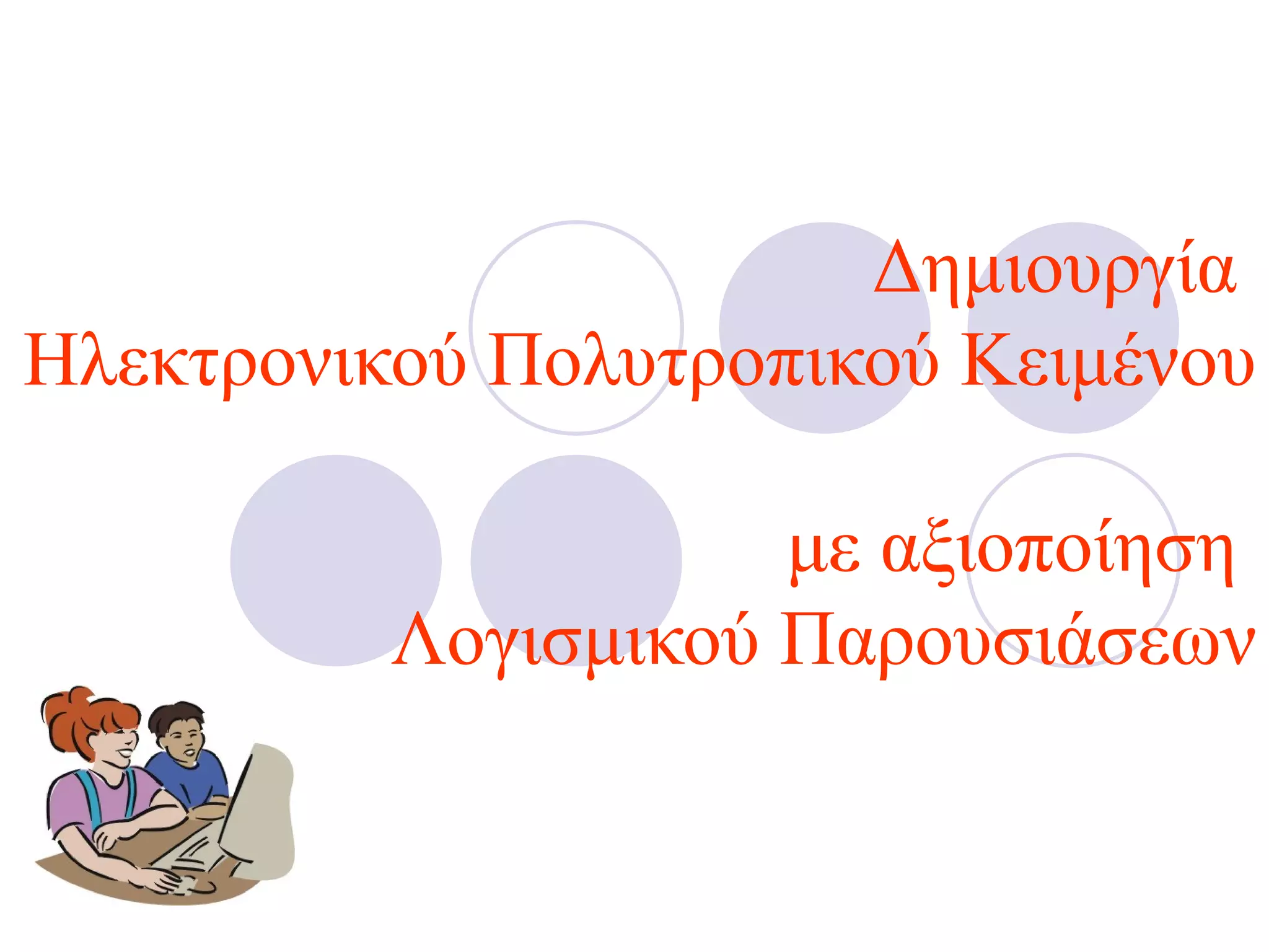 Μια πολυτροπική θεωρίατης επικοινωνίας Kress G. and van Leeuwen, T. (2001), Multimodal Discourse, London: Arnold Δ. Κουτσογιάννης, Η πολυτροπική θεωρία της επικοινωνίας ως εργαλείο για την αξιολόγηση εκπαιδευτικού λογισμικού (στο Επιμορφωτικό υλικό) Πολυτροπικό κείμενο Περιεχόμενο ( content ) Έκφραση (expression) Λόγος (discourse) Σημειωτικοί τρόποι Σχέδιο (design) Δομή - Οργάνωση Παραγωγή (production) Μέσα παραγωγής Διανομή (distribution) Παρουσίαση στο κοινό