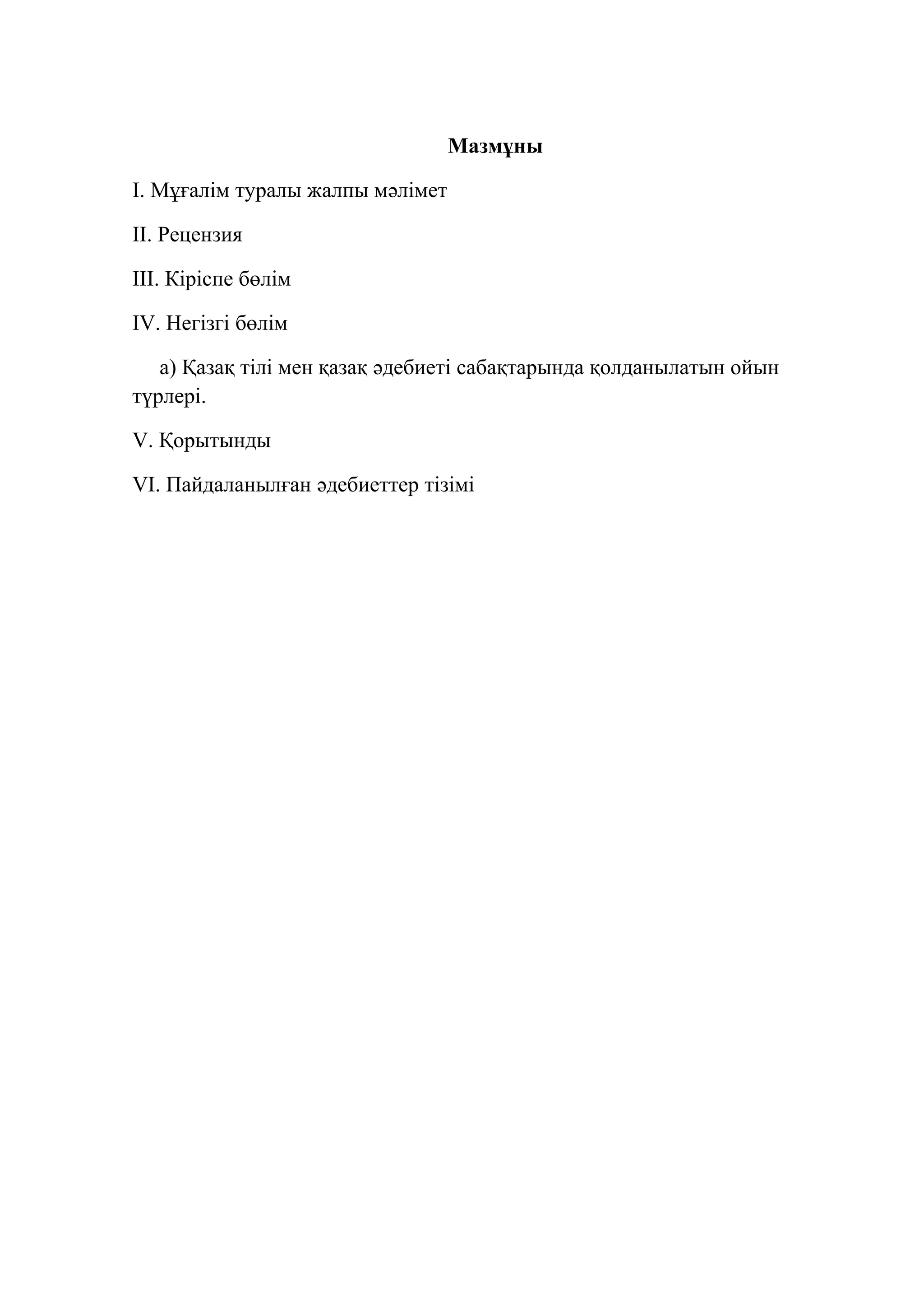 сабағында қолдануға болатын ойын түрлерін атап өткен.