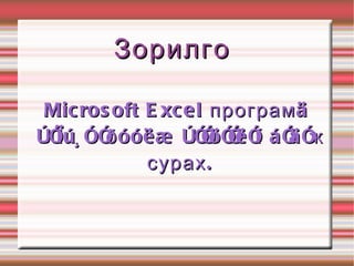Microsoft office excel үнэлгээний тест боловсруулах DOCX