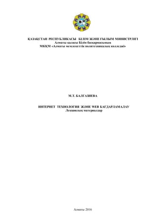 ИНТЕРНЕТ ТЕХНОЛОГИЯ ЖӘНЕ WEB БАҒДАРЛАМАЛАУ. Лекциялық материалдар –