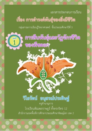 เอกสารประกอบการเรียน เรื่อง การดำรงพันธุ์ของสิ่งมีชีวิต กลุ่มสาระการเรียนรู้วิทยาศาสตร์ ชั้นประถมศึกษาปีที่ 5 โดย นางวิไลรัตน์ อนุสรณ์ประดิษฐ์ ครูโรงเรียนพิณพลราษฎร์ ตั้งตรงจิตร 12 สพป.พล.เขต 2