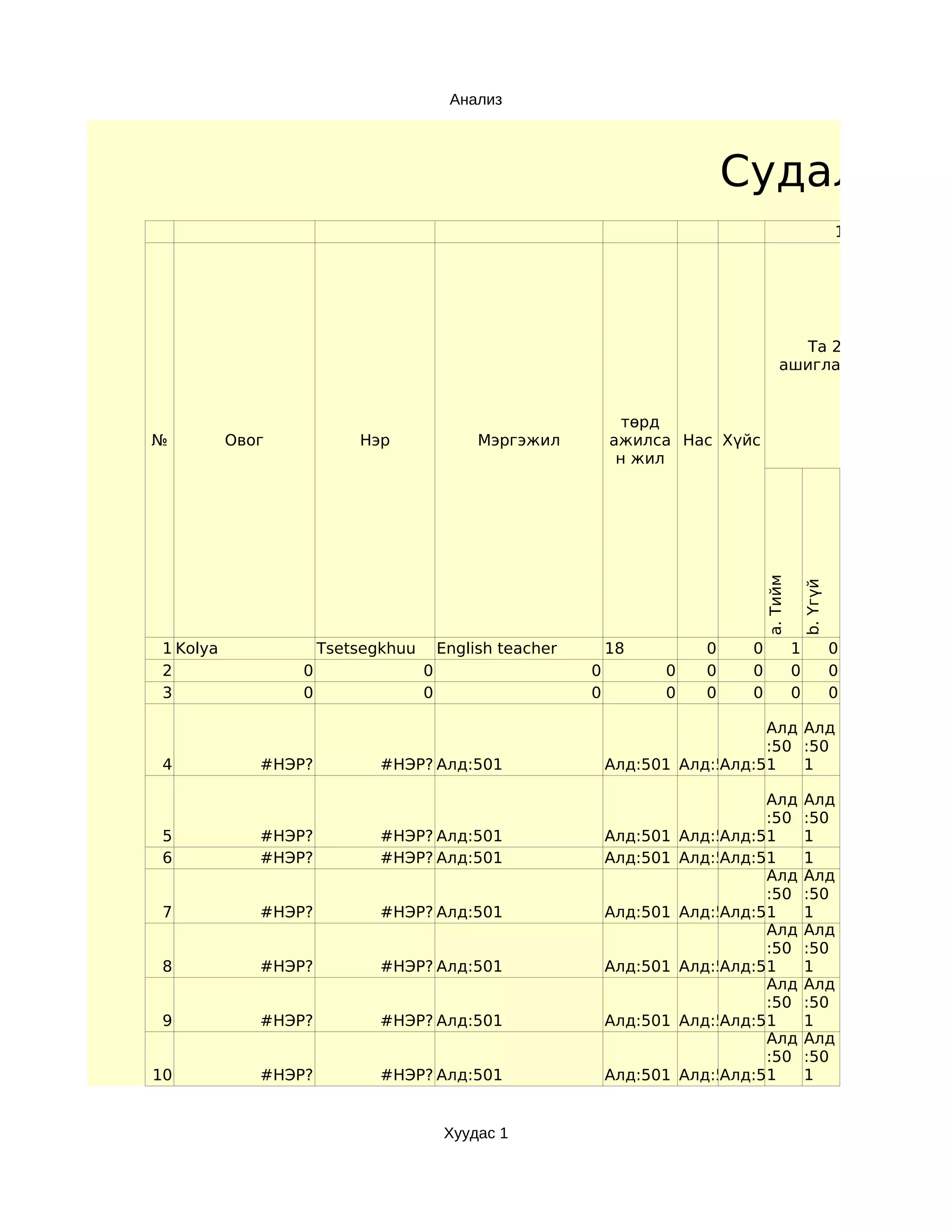 Та Spreadsheet програм ашиглан цахим тест хийсэнүү?