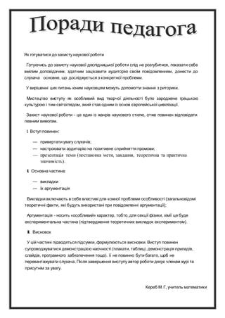 Готуючись до захисту наукової дослідницької роботи слід не розгубитися, показати себе