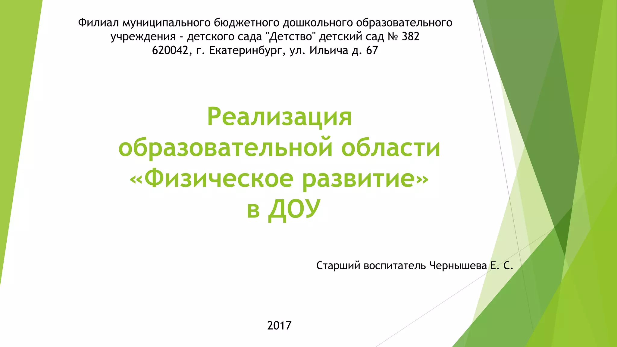Документ описывает реализацию образовательной области «физическое развитие» в дошкольном образовательном учреждении, акцентируя внимание на важности двигательной активности и формировании здорового образа жизни у детей. Рассматриваются цели программы, такие как развитие физического и психического здоровья детей, а также создание благоприятной образовательной среды. Включены также методические рекомендации для воспитателей и родителей, направленные на повышение компетентности в области физического воспитания.