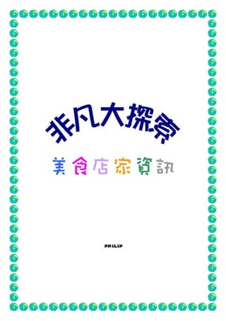 店家資訊 地址 聯絡電話 說明事項 評分 ☺ 日式串燒,從日本取經回來陳年 沾醬。倒三角型雞腿肉串、圓形 洋蔥串、鹽烤豬頸肉、香菇串、 紅蜻蜓食事處 台北市永康街 35 號之 1 02-2394-7517 丸子三兄弟。一份 2~3 根,約 80~90 元。營業時間:週一至週 五 17~24;週六 12~24;週日 12~23 基隆路和臨江路街口,臨江街口 老闆張兩慶,灑上芝麻的烤玉 芝麻烤玉米 第三攤 米。 老闆麻糬桑是日本人,價位全部 都 50 元,附免費的日本抹茶、 玄米茶和焙茶,分水煮和烤的兩 麻糬餅屋 士林觀光夜市 145 號攤位 種吃法。各種沾醬〈黑芝麻、起 司、咖哩〉 。黑大豆黃粉麻糬、 蜜紅豆麻糬,時間 1700-2330。 老闆陳日忠,一串 20 元。客家 麻糬與日式麻糬的結合。有九種 沖繩日式碳烤麻糬 台北市峨嵋街 49 號巷口 口味〈黑糖醬、花生、起司、抹 茶、醍醐照燒、咖哩等〉 。 老闆彭俊勝,夢幻噴泉巧克力, 老闆自行研發原本要十萬多的 幸福聖堂 台中市北區一中街 101 號 04-2371-8059 噴泉機。有水果、棉花糖、銅鑼 燒、泡芙、小饅頭等口味。可自 己 DIY 沾巧克力醬。 老闆洪嘉駿,串串棒〈像金色樹 枝的炸義大利麵條〉 。孜然羊肉 串〈用一歲小羔羊肉〉 。沙爹牛 BOVEN 串串霸 台北市中山北路五段 437 號 02-2882-0886 肉 串 。 17 公 分 大 草 蝦 〈 2 支 100〉。培根蘆筍、黃金雞汁烤飯 團。咖哩火鍋〈220 元〉 。三串 100 元。 搭宜蘭線鐵路或自基隆火車站 前搭往瑞芳、金瓜石的基隆客運 在瑞芳火車站下,開車下中山高 台北縣瑞芳鎮火車站前民生街 0963-456-666 往八堵交流道,循 2 丁省道(瑞 華記龍鳳腿 口(電信局旁) 0933-931-311 八公路)往瑞芳火車站方向可 到,全程約 10 公里。用鯊魚魚 漿+胡蘿蔔+高麗菜,用豬內臟 網膜包裹油炸。 台北縣深坑鄉深坑村深坑街 深坑老街入口 大樹旁邊,營業 金大鼎炭烤香豆腐 162-1 號 時間 0830~1030