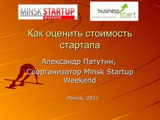Документ обсуждает основные факторы, определяющие стоимость стартапа с точки зрения инвесторов, включая прогнозируемую норму прибыли и риски проекта. Он также описывает различные методы оценки стоимости бизнеса, такие как сравнительный, восстановительный и метод нормы прибыли. В заключение, документ предлагает рекомендации по повышению стоимости доли продаваемого бизнеса без дополнительных финансовых вложений.