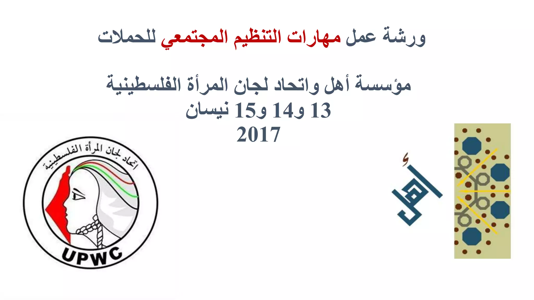 عُقِدت ورشة عمل للاجتماعي حول تنظيم مهارات الحملات النسائية الفلسطينية في 13-15 نيسان 2017. الهدف كان تعزيز المعرفة حول أسس التنظيم المجتمعي وتطبيق المهارات من خلال التجارب العملية والنظريات. تم تناول عدة مواضيع منها القيادة وأهمية العمل الجماعي في تحقيق أهداف المجتمع.