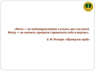 «Мати — ценайзворушливіше з усього, що є на землі.