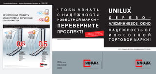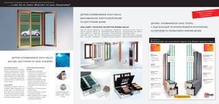 Документ представляет акцию по продаже энергосберегающих дерево-алюминиевых окон Unilux, подчеркивающую их высокое качество и преимущества для экономии энергии. Окна оснащены двухкамерными стеклопакетами с отличными теплоизоляционными свойствами и доступны в большом разнообразии цветовых решений. Компания Unilux также предлагает индивидуальные консультации и монтаж окон через сеть дилеров.