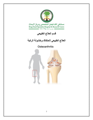 يتناول هذا الكتيب موضوع التهاب الركبة واحتكاكها، وهو حالة شائعة تسبب آلام وصعوبة في الحركة نتيجة تآكل الغضروف. يشرح كيفية التعامل مع الحالة باستخدام العلاج الطبيعي ووسائل أخرى للتخفيف من الألم وتحسين القدرة الحركية. يشير أيضًا إلى أهمية التمارين والتغذية المناسبة للحفاظ على صحة المفاصل.