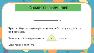 Чрез съобщителните изречениясе съобщава нещо, дава се