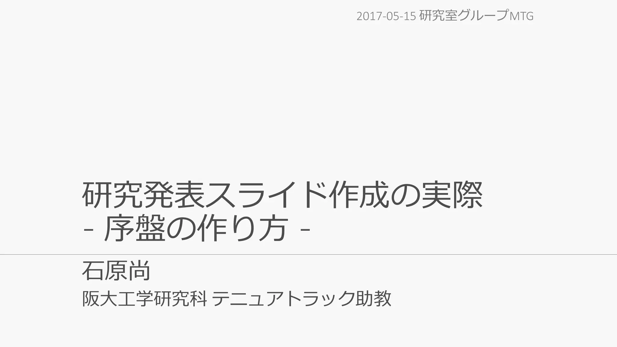 研究発表スライド作成の実際 - 序盤の作り方 - 石原尚 阪大工学研究科