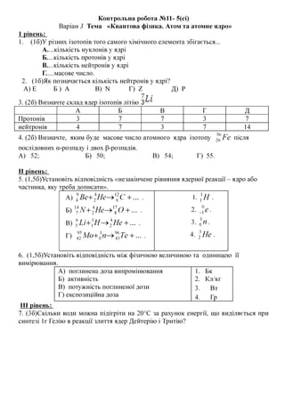 Квантова фізика. Атом та атомне ядро 10-5 сі