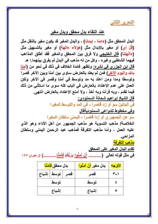 تتناول الوثيقة مسائل تتعلق بقراءات القرآن الكريم، خاصة فيما يتعلق بالهمزات وتسهيلها عند القراء. تذكر الوثيقة آراء علماء التجويد حول حذف أو إثبات الهمزات في السياقات المختلفة، وكما تشير إلى الأوجه المتعددة التي يتبعها القراء في هذا الشأن. يتم التركيز على الآراء المختلفة حول كيفية التعامل مع الهمزات في القراءات واستعراض آراء عدة علماء.