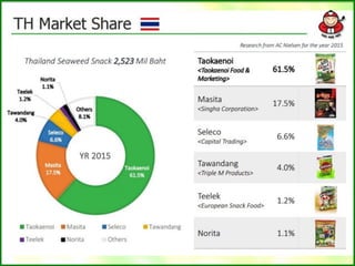 • สาหร่ายเป็นผลิตภัณฑ์ที่เป็นที่นิยมของผู้ บริโภคในตลาดแถบเอเชีย