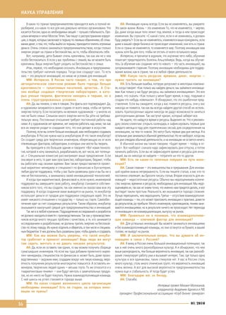 ñòðàíàõ ïðåäïðèíèìàòåëÿì ïðèõîäèòñÿ æèòü â ïîëíîé íå- ðàçáåðèõå, à â êàêèõ-òî âñå äëÿ íèõ äîâîëüíî íåïëîõî îðãàíèçîâàíî. ×òî êàñàåòñÿ Ðîññèè, îäíà èç íåîáõîäèìûõ âåùåé – ëó÷øàÿ ñòàáèëüíîñòü. Ïðî- øëûì âå÷åðîì ÿ ÷èòàë Moscow Times. Òàì ïèøóò î ðàñïðîñòðàíåíèè êîððóï- öèè, î ëþäÿõ, êîòîðûõ çàêëþ÷àþò â òþðüìó ïî ëæèâûì îáâèíåíèÿì, îá îòìû- âàíèèäåíåã,îòîì,÷òî,÷òîáûâûéòèèçòþðüìû,ïðèõîäèòñÿïëàòèòüîãðîìíûå äåíüãè. Î÷åíü ñëîæíî çàíèìàòüñÿ ïðåäïðèíèìàòåëüñòâîì, êîãäà ñòîëüêî ýíåðãèè óõîäèò íà ñòðàõè è áåñïîêîéñòâà, íà òî, ÷òîáû îáåçîïàñèòü ñåáÿ. Âîò, íàïðèìåð, äåòè áûâàþò î÷åíü êðåàòèâíû, òàê êàê èì íå î ÷åì îñîáî áåñïîêîèòüñÿ. À åñëè ó âàñ ïðîáëåìû ñ ñåìüåé, âû íå ìîæåòå áûòü êðåàòèâíû. Âàøà ýíåðãèÿ áóäåò óõîäèòü íà áåñïîêîéñòâî î ñåìüå. Èòàê, ïåðâîå, ÷òî íåîáõîäèìî îñîçíàòü. Èííîâàöèè è ïðåäïðèíèìà- òåëüñòâî òðåáóþò íàëè÷èÿ ïîðÿäêà. Òîãäà îíè ñîçäàäóò õàîñ. Òî åñòü õàîñ – ýòî ðåçóëüòàò èííîâàöèé, íî íèêàê íå óñëîâèå äëÿ èííîâàöèé. ÌÌ: Èíòåðåñíî.  Ðîññèè ÷àñòî ãîâîðÿò, î òîì, ÷òî ïðè àâòîêðàòè÷åñêîì ñîâåòñêîì ðåæèìå áûëî ãîðàçäî áîëüøå êðåàòèâíîñòè — òàëàíòëèâûõ ïèñàòåëåé, àðòèñòîâ… À Ñòà- ëèí âîîáùå ñîçäàâàë «òâîð÷åñêèå ëàáîðàòîðèè», â êîòî- ðûõ ó÷åíûå òâîðèëè, ôàêòè÷åñêè íàõîäÿñü â òþðüìå, íî â î÷åíü ñòðóêòóðèðîâàííûõ óñëîâèÿõ. ÈÀ: Äà, âû ïîíÿëè, î ÷åì ÿ ãîâîðþ. Ýòè ôàêòû âñå ïîäòâåðæäàþò. Äà, è õóäîæíèêè çàïèðàþòñÿ â ñâîèõ ñòóäèÿõ îò âñåãî ìèðà, ÷òîáû íå òðàòèòü ýíåðãèþ ïîïóñòó. Åñëè ïîñìîòðåòü íà âåëèêèõ õóäîæíèêîâ – ó ìíîãèõ èç íèõ íå áûëî ñåìüè. Ñëèøêîì ìíîãî ýíåðãèè ìîãëî áû óéòè íà òðåáîâà- òåëüíóþ æåíó. Ïîñòîÿííûå îòíîøåíèÿ òðåáóþò ïîñòîÿííîé ðàáîòû íàä íèìè. À ó õóäîæíèêîâ íåò âðåìåíè, íåò ýíåðãèè ðàáîòàòü íàä íèìè, òàê êàê âñÿ èõ ýíåðãèÿ óõîäèò â ñîçèäàíèå òîãî, ÷òî îíè äåëàþò â èñêóññòâå. Ïîýòîìó, åñëè âû õîòèòå áîëüøå èííîâàöèé, âàì íåîáõîäèìî ñîçäàâàòü èíêóáàòîðû.  Ðîññèè íóæíà ìàññà èíêóáàòîðîâ. È ÷òî òàêîå èíêóáàòîð? Îí ñîçäàåò ñðåäó äëÿ òâîð÷åñêèõ èíæåíåðîâ, îáåðåãàþùóþ èõ îò âñåõ îòâëåêàþùèõ ôàêòîðîâ, ëàáîðàòîðèè, â êîòîðûõ îíè ìîãëè áû òâîðèòü. Âû ïðèõîäèòå â ýòî áîëüøîå çäàíèå è ãîâîðèòå: «Âîò íîâàÿ òåõíîëî- ãèÿ, êîòîðîé ÿ õî÷ó çàíèìàòüñÿ, ðàçðàáàòûâàòü åå, âîò ÷èñëà, âîò ïîòåíöè- àë…» Ñïåöèàëüíàÿ êîìèññèÿ ðàññìàòðèâàåò âàøå ïðåäëîæåíèå. Åñëè îíà âåðèò â íåãî, òî äàåò âàì ïðîñòðàíñòâî, ëàáîðàòîðèþ, áþäæåò, ÷òîáû âû ðàáîòàëè íàä ñâîèìè èäåÿìè. Âàì òàêæå ïðåäîñòàâëÿþòñÿ ïðîåêò- íûé ìàðêåòèíã-ìåíåäæåð è ñïåöèàëèñò ïî ôèíàíñàì è áóõãàëòåðèè, ëþáàÿ äðóãàÿ ïîääåðæêà, ÷òîáû ó âàñ áûëè ðàçâÿçàíû ðóêè è âû áû íè î ÷åì íå áåñïîêîèëèñü, à çàíèìàëèñü ñâîåé èííîâàöèîííîé òåõíîëîãèåé. È êîãäà ïðè ìàðêåòèíãîâîé, ôèíàíñîâîé è, åñëè íóæíî, èíæåíåðíîé ïîääåðæêå âû çàâåðøàåòå ñâîþ ðàáîòó, èíêóáàòîð ñòàíîâèòñÿ ñîáñòâåí- íèêîì âñåãî òîãî, ÷òî âû ñîçäàëè, òàê êàê èìåííî îí îêàçàë âàì âñþ ýòó ïîääåðæêó. À êîãäà ñîçäàííîå âàìè âûâîäèòñÿ íà ðûíîê, òî èíêóáàòîð èñïîëüçóåò äåíüãè îò ïðîäàæ äëÿ ïîääåðæêè ñëåäóþùèõ èäåé. Ýòî íå èìååò íèêàêîãî îòíîøåíèÿ ê ãîñóäàðñòâó – òîëüêî íà ñòàðòå. Ñàìîîáåñ- ïå÷åíèå èäåò çà ñ÷åò ñîçèäàåìûõ ðåçóëüòàòîâ. Òàêèì îáðàçîì, èíêóáàòîð îêàçûâàåòñÿ íàèëó÷øåé ñðåäîé äëÿ ïðåäïðèíèìàòåëüñòâà è èííîâàöèé. Òàê æå è â ëþáîé êîìïàíèè. Ïîäðàçäåëåíèå èññëåäîâàíèé è ðàçðàáîòîê íå äîëæíî íàõîäèòüñÿ âìåñòå ñ ïðîèçâîäñòâåííûì. Òàê êàê ó ïðîèçâîäñòâåí- íèêîâ âñåãäà ìíîãî òåêóùèõ ïðîáëåì ñ êà÷åñòâîì, à òå, êòî çàíèìàåòñÿ èññëåäîâàíèåì è ðàçð