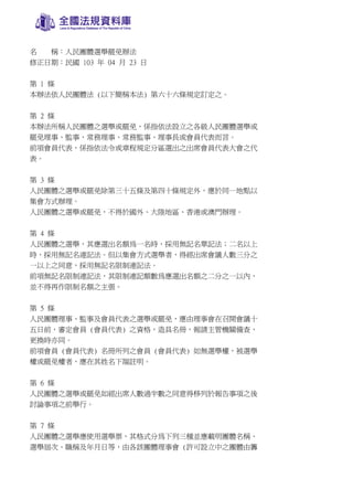 该文件阐述了人民团体选举和罢免的具体规则,包括选举方式、投票程序、选票格式以及会员代表的资格等重要细则。此规章旨在确保人民团体的选举操作透明、公正,并遵循法律规定。文件明确规定了选举的地点、程序和选民的权利及义务,以促进民主决策。