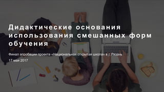 Документ обсуждает использование смешанных форм обучения и методические подходы в образовательном процессе. В нем представлены основы дидактики, такие как индивидуализация, персонализация и новые принципы организации уроков. Основное внимание уделяется апробации проекта 'национальная открытая школа' и применению принципов дифференциации и зонирования пространства в классе.