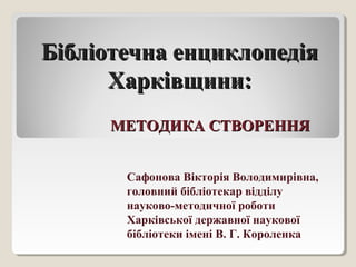 4. Ракитянська В.Д. «Бібліотечна енциклопедія Харківщини»: