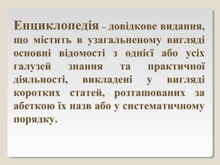 Енциклопедія – довідковевидання,