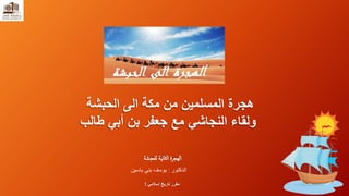 تتناول الوثيقة تاريخ هجرة المسلمين إلى الحبشة في زمن النبي محمد، حيث فرّ المسلمون من الاضطهاد في مكة إلى النجاشي. يُظهر النص كيف كانت الظروف القاسية التي واجهها المسلمون، ودور النجاشي في حماية المهاجرين. كما يُبرز أهمية الحوار بين الدينين ودور شخصية جعفر بن أبي طالب في ذلك.