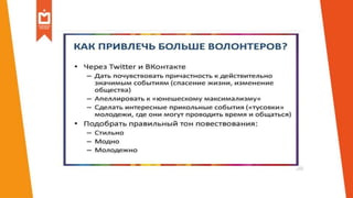 Документ обсуждает стратегию эффективного продвижения некоммерческих организаций (НКО) через веб-сайты и социальные сети, подчеркивая важность создания качественного и уникального контента. В нем выделяются ключевые аспекты, такие как целевая аудитория, методы SEO, анализ эффективности и принципы создания вирального контента. Также рассматриваются требования к печатным материалам и использование социальных сетей для укрепления доверия к НКО и лучшего взаимодействия с аудиторией.
