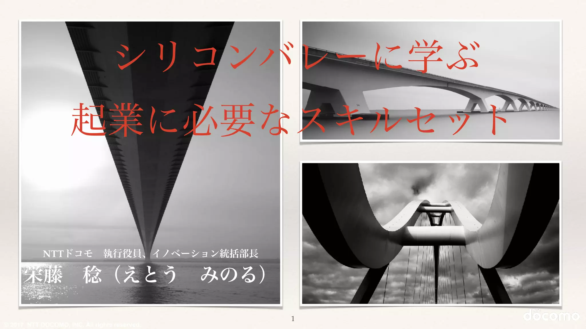 シリコンバレーと東京におけるコーポレートベンチャーキャピタル(CVC)の社長として5年以上の投資経験から 起業に必要なスキルセットを解説する. まず初めにスタートアップエコシステムとその歴史を述べ,近年の起業動向を紹介する. そしてCVC活動で経験したスタートアップの事例をいくつか紹介し,必要とされる技術力,社会問題に対する洞察力について議論する. この講義を通じて,起業家を目指さないまでも,情報技術分野の技術者として学ぶべきスキルとマインドセットを習得る.