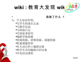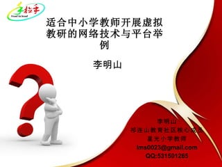 本文介绍了中小学教师利用网络技术和平台(如wiki、博客和在线研修)开展虚拟教研的实践与思考。李明山通过个人知识管理、跨校活动和网络研讨来提升教学效果和专业发展。文中还强调了网络工具在教学经验积累和知识分享中的重要性。