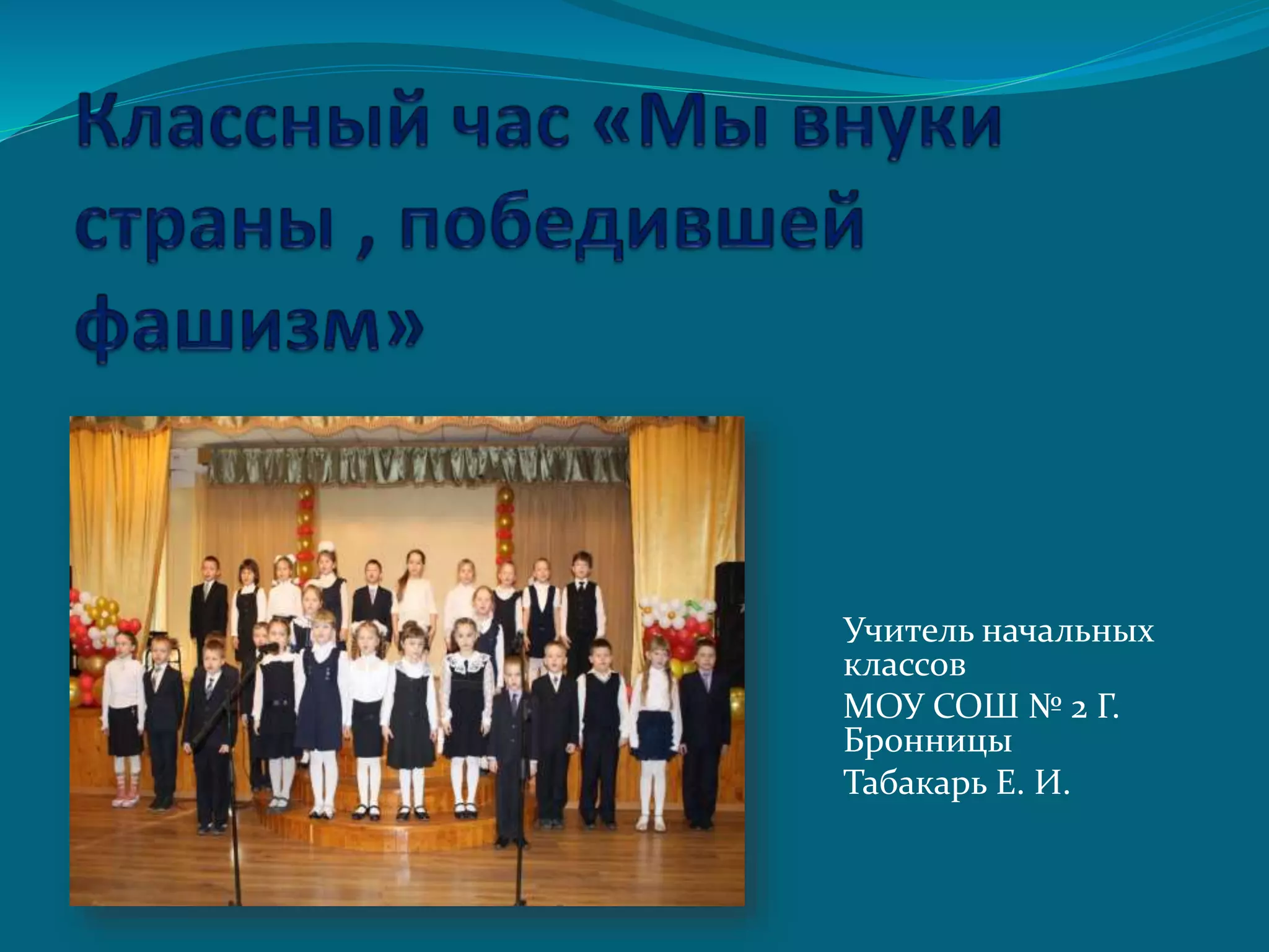 Документ представляет собой список учителей начальных классов школы №2 города Бронницы. В нем упоминаются имена учителей: Табакарь Е. И., Маринеско А. И., Соснов В. М., Блохин С. Ф., Маркин Е. Ф. и Воинов В. И.