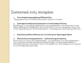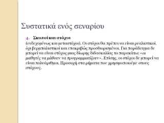 και τους ειδικούς στόχους του προτεινόμενου σεναρίου