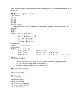 Мета уроку. Ввести поняття середнього арифметичного кількох чисел. Розвивати