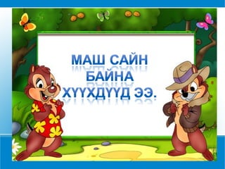 Эхийг уншаарай. ЗусланЗун болоход айлууд зусланд гарлаа. Зуслангийн байгаль үнэхээр сайхан байдаг. Өнгө бүрийн цэцэг алаглан , эрвээхэй эргэлдэнэ. Цэцгэн дээр суусан зөгий зий, зий дуугарлаа. Голын захад хүүхдүүд тоглон зугаацна. Хөвчийн модонд хөхөө шувуу донгодох нь чихэнд чимэгтэй сонстоно. Энэ бүхэн миний сэтгэлд нэг л сайхан , дотно санагдлаа. . - 18.