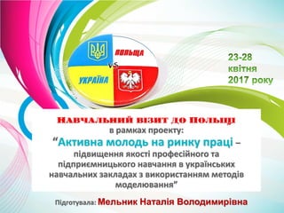 Навчальний візит до Польщі в рамках проекту:“Активна молодь на ринку праці – підвищення якості професійного та підприємницького навчання в українських навчальних закладах з використанням методів моделювання”