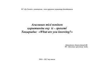 - Қорытынды оқу іс - әрекеттің тақырыбы «What are you knowing?»
