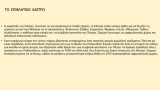 •Η ακρόπολη της Πάτρας. Ζωντανό, αν και λεηλατημένο πολλές φορές, το Κάστρο στέκει ακόμη όρθιο για να θυμίζει τις