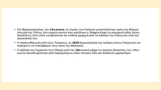 νίκη τους επι των πατρινών). Δυστυχώς η αμάθεια και η απληστία των χρόνων εκείνων είχαν σαν αποτέλεσμα τη λεηλασία των