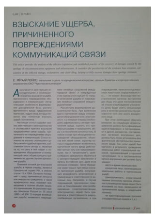 Взыскание ущерба, причиненного повреждениями коммуникаций связи