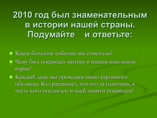 Документ посвящен воспоминаниям о Великой Отечественной войне и значимости события, произошедшего в 1941 году. Он описывает героизм солдат, в том числе женщин-пилотов, и индивидуальные судьбы людей, не вернувшихся с фронта. Символом памяти и победы становится сирень, ассоциирующаяся с потерями и надеждой на мирное будущее.