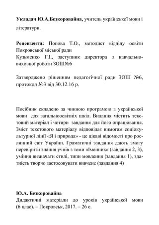 Укладач Ю.А.Безкоровайна, учительукраїнської мови і