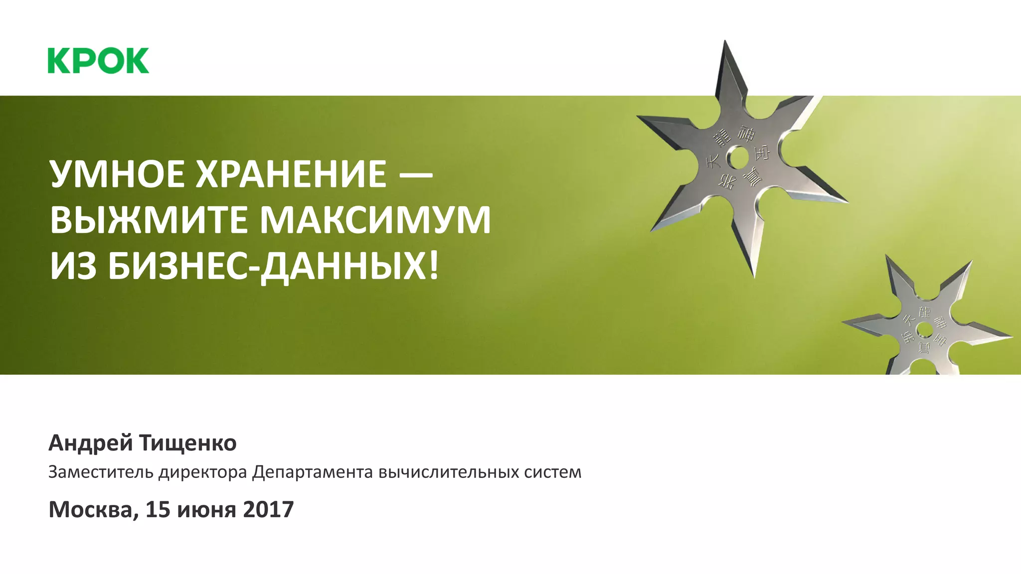 Документ описывает деятельность компании КРОК, занимающейся умным хранением данных и консалтингом в сфере IT. Основные достижения включают успешное выполнение более 2000 проектов в год, оптимизацию инфраструктуры для бизнеса и применение аналитики данных. Приведены примеры кейсов, показывающих результаты модернизации и аутсорсинга, а также предложения по цифровой трансформации и финансовым инструментам.
