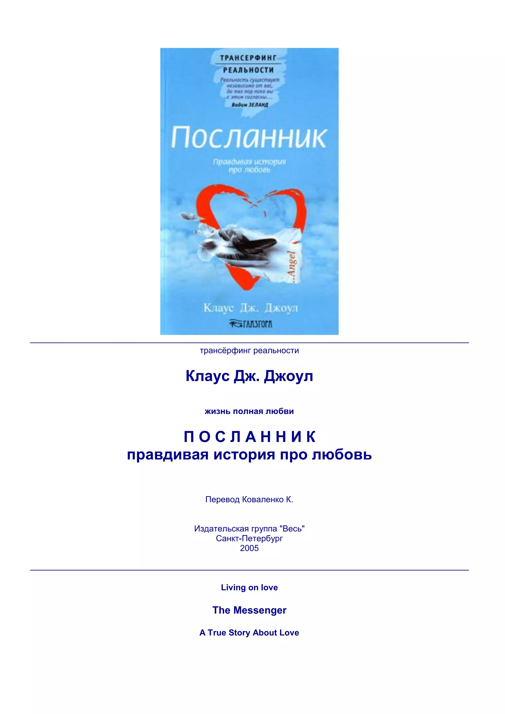 Книга 'Посланник' автора Клауса Дж. Джоула исследует философские и практические аспекты любви как мощного источника энергии, способного изменять жизнь и окружение. Через личные истории и медитативные практики автор делится уникальным подходом к получению доступа к этому источнику, предполагая, что любовь может изменить прошлое и будущее. Документ также рассматривает методы получения информации от подсознания и предлагает актуальные инструкции по применению любви в повседневной жизни.