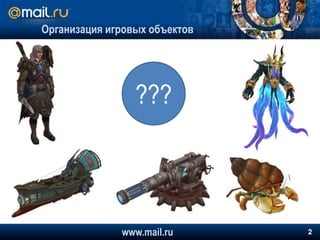 Документ содержит технический обзор модульного дизайна игровых объектов в проекте 'Аллоды Онлайн'. В нем обсуждаются подходы к организации и управлению игровыми объектами с использованием объектно-ориентированного программирования, акцентируя внимание на модульности, зависимости интерфейсов и возможность динамического управления компонентами объектов. Также упоминаются предложения по улучшению логики и типизации объектов для повышения удобства разработчиков и дизайнеров.