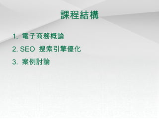 電子商務概論 2. SEO 搜索引擎優化 3. 案例討論