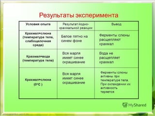 Документ содержит информацию о процессах пищеварения в ротовой полости, включая роль слюны и органы ротовой полости. Группам учащихся поручены различные задания по изучению структуры зубов, слюнных желез и действия ферментов. В конце представлены варианты домашних заданий для углубленного изучения темы.