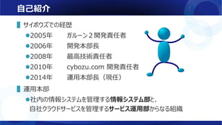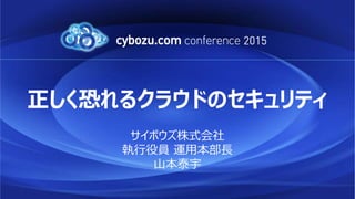 サイボウズで運用本部長を務めている山本と申します。 本日は「正しく恐れるクラウドのセキュリティ」と題して、cybozu.comなどのクラウドシステムを安全に運用する方法を解説いたします。