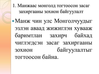 Mongolchuud manjiin erhsheeld orson ni PPTX