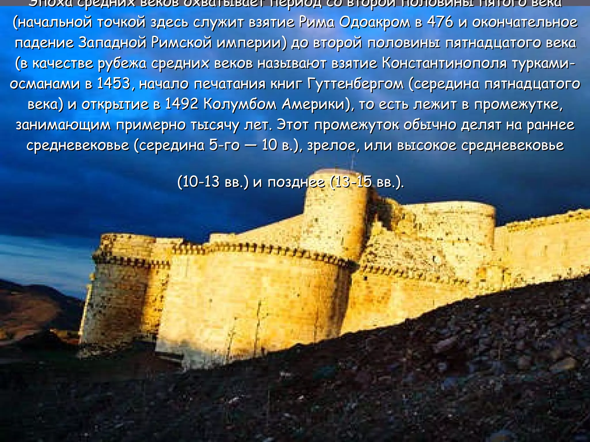 Документ охватывает период средневековья, рассматривая его культурные, политические и социальные аспекты с 5 по 15 века. Основное внимание уделяется изменениям в христианской культуре, формированиям феодальной структуры, роли рыцарства и разнообразию культурного наследия. В документе также упоминаются важные исторические события и характеристики, которые отличают этот период от античности и нового времени.