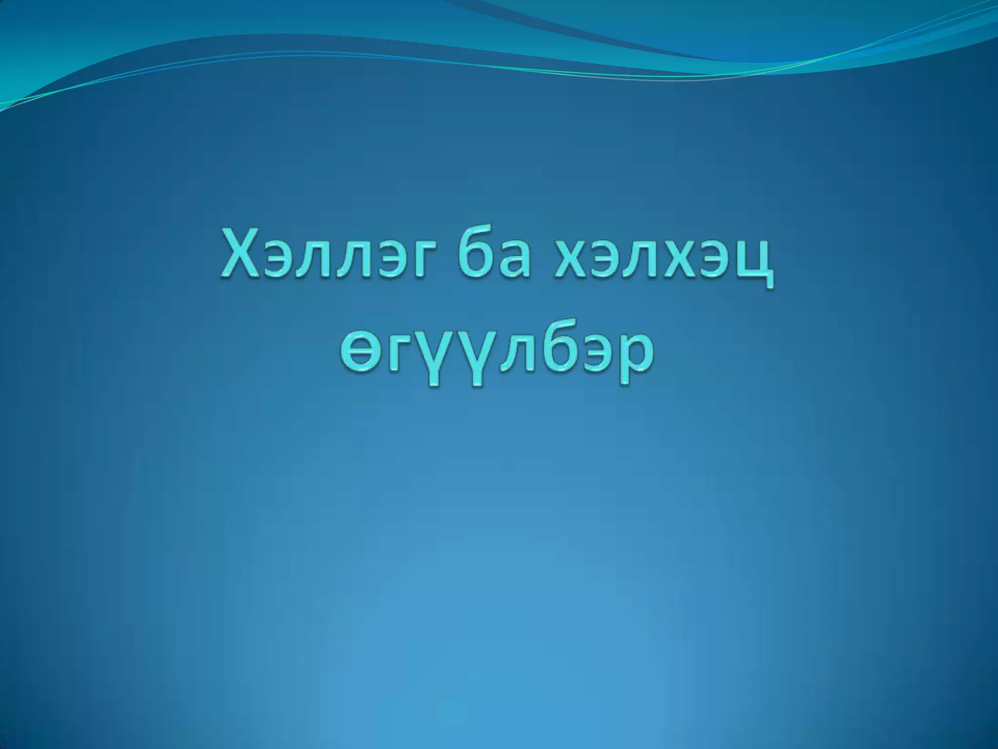 Өгүүлбэр Энгийнөгүүлбэр : Гол ба гол бус гишүүдээс бүтнэ. Хэлхэц өгүүлбэр : Нэг үйлдэгчийн хоёроос дээш үйл нь хэлхэц болно. Хэллэг өгүүлбэр: Хоёр ба түүнээс дээш өгүүлбэрүүд нь дор дороо өгүүлэгдэхүүн , өгүүлэхүүнтэй байдгаараа хэлхэц өгүүлбэрээс ялгаатай. - 9.