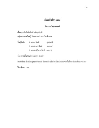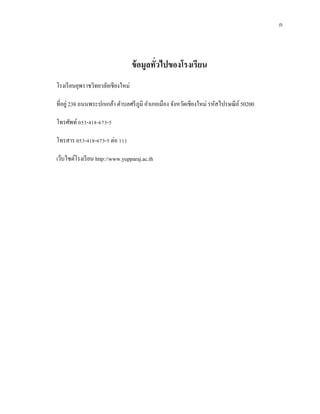 จ สารบัญ เรื่อง หน้า ข้อมูลทั่วไปของโรงเรียน ก เกี่ยวกับโครงงาน