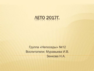 В летнем лагере 2017 года группа «Непоседы» провела разнообразные мероприятия, включая музыкальные, театральные и спортивные дни с играми и викторинами. Дети участвовали в творческих активностях, таких как создание музыкальных инструментов из лего и рисование на песке. Одним из ключевых элементов программы были занятия, направленные на развлечение, укрепление дружбы и здоровье.